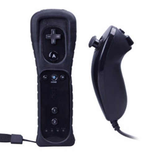 TELECOMANDO Wii + GUSCIO IN SILICONE + NUNCHUK compatibile per Wii nero